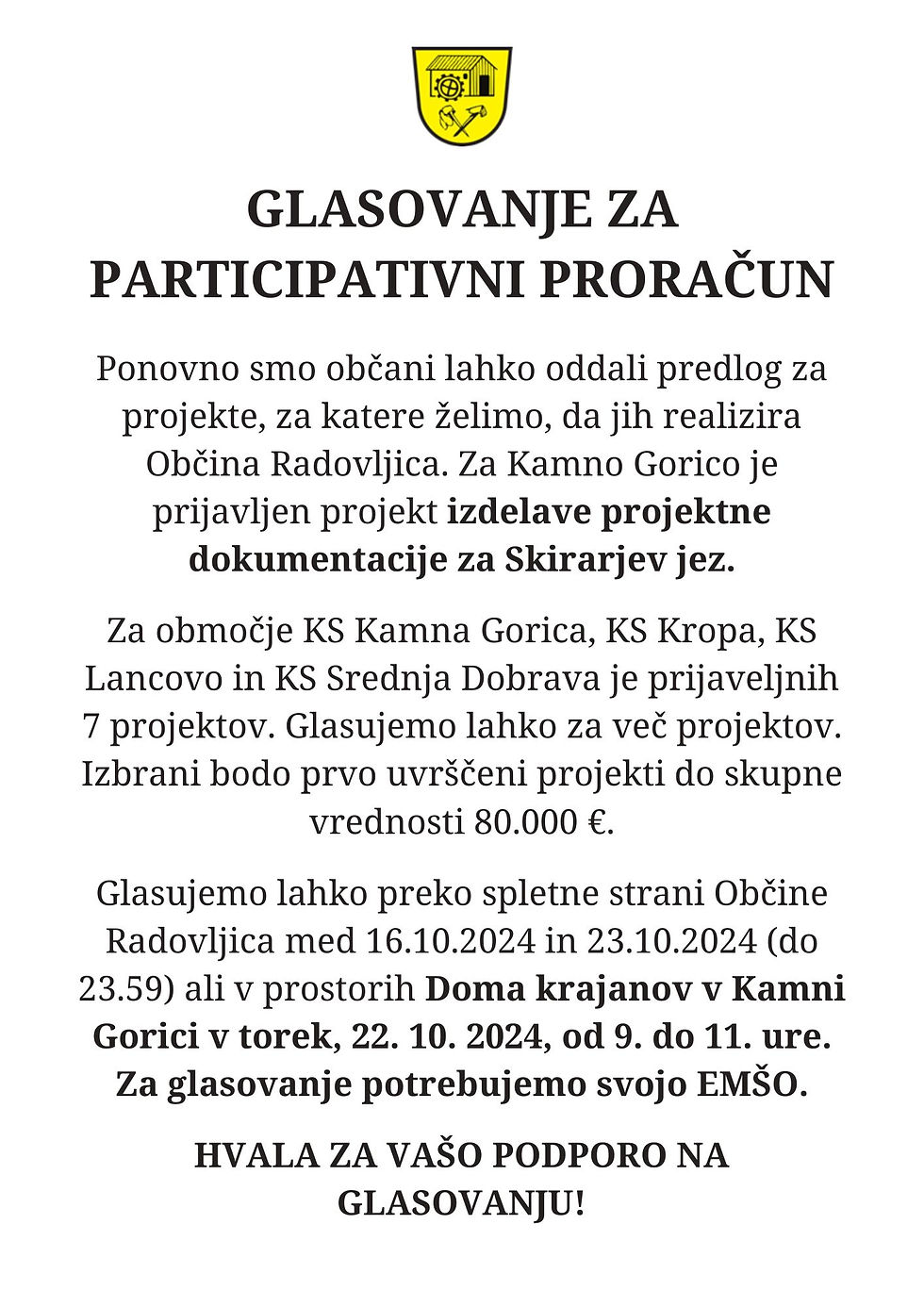 Participativni proračun 2025 in 2026Bozidar DrozgOct 18, 2024Branje traja 0 minGlasujete TUKAJVabilo KS v PDF oblikiObvestilo Občine Radovljica v PDF obliki